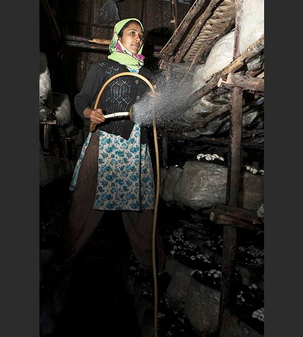 Karthik has a team of five women working at the mushroom grow-house who apart from doing composting and cropping also help Karthik in improving the facilities at the farm and in implementing various sustainable methods.