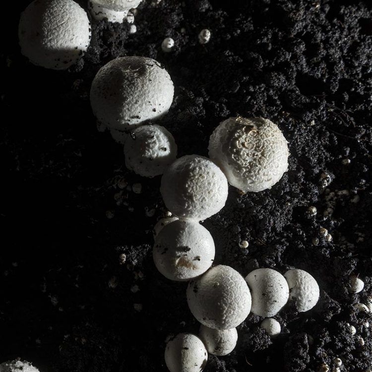 Walking through the monochromatic farms, I see the white fungi inviting me to spend the rest of my day with them. – Rahul Das