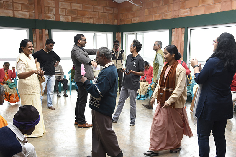 After Tea and a slide show by Iqbal, the guests were treated to a typical South Indian lunch. This was followed by fun and games before the guests left back for their Home in the evening. Can you believe that at the Memory game where we had 15 different items on display one elderly lady without sight remembered all 15 of them just on the basis of listening to the names of the 15 items displayed? Mindboggling stuff!